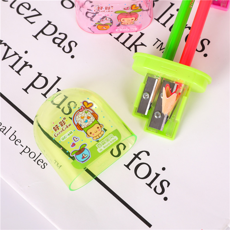 Lucky Luck Factory Direct Sales Double Hole Half Oval Sharpener Student Pencil Sharpener Cartoon Drawing Sharpener Can Be Customized Pencil Sharpener